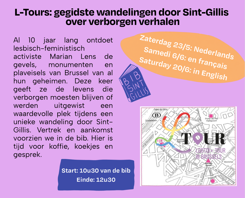 Bienvenue dès 10h à la Bibliothèque. La visite guidée démarre à 10h30 avec la sociologue Marian Lens. Cette promenade est organisée dans le cadre des semaines de la Pride en collaboration avec la Bib Sint-Gillis, et est subventionnée par l’Egalité des Chances de la commune de Saint-Gilles.